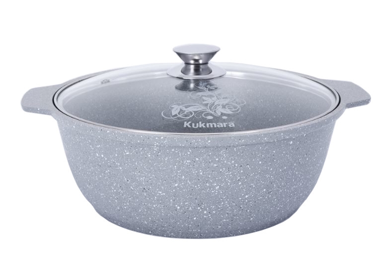 Кастрюля жаровня 4л "Светлый мрамор" стекл. крышка