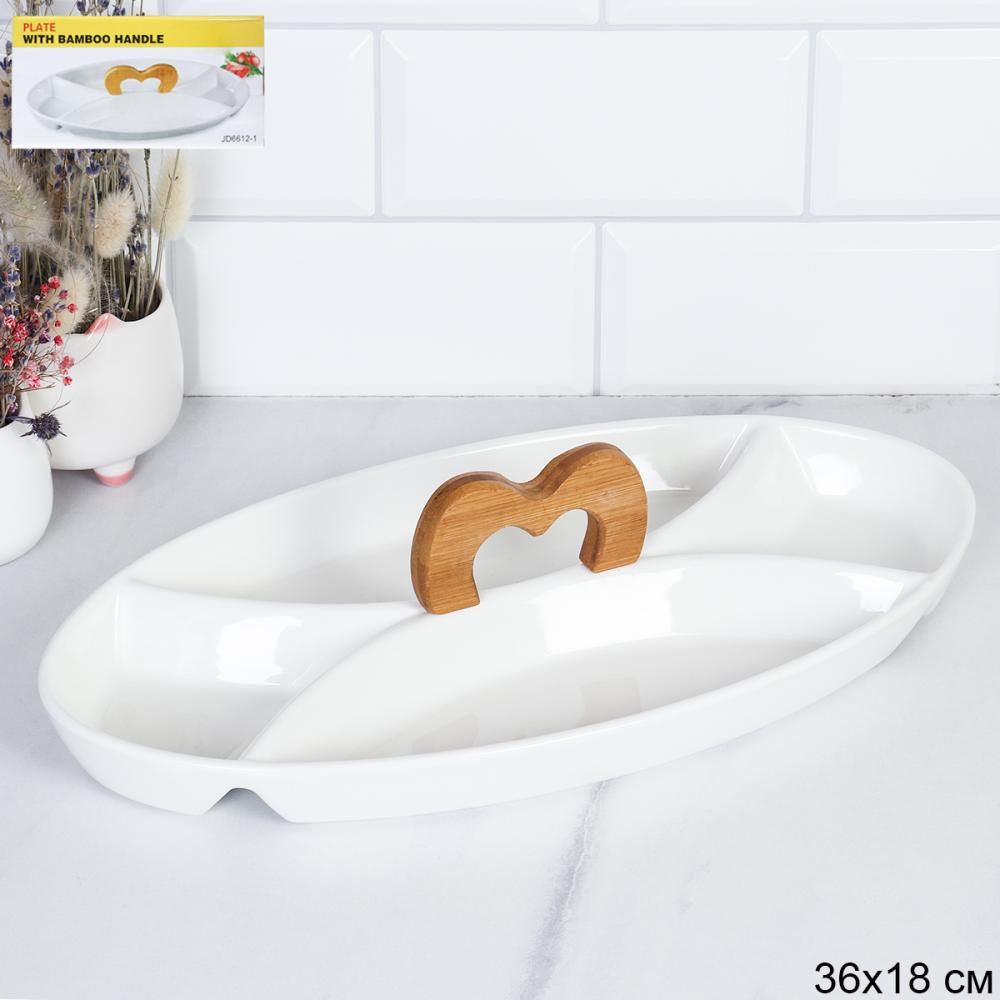 Менажница 4 секции 36*18см деревянная ручка
