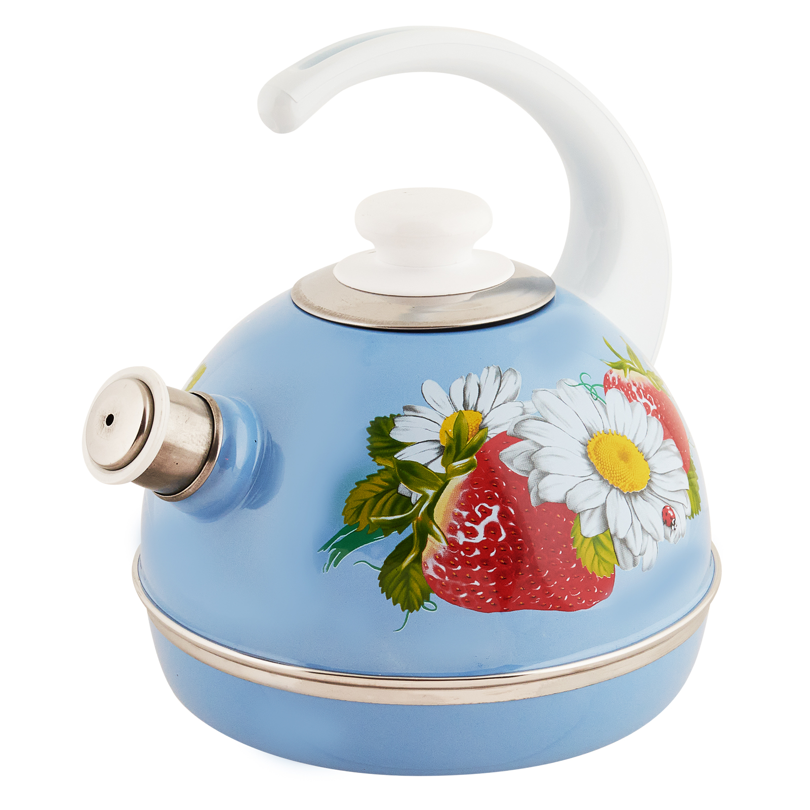 Чайник 3.5л со свистком серо-голубой клубника с ромашкой