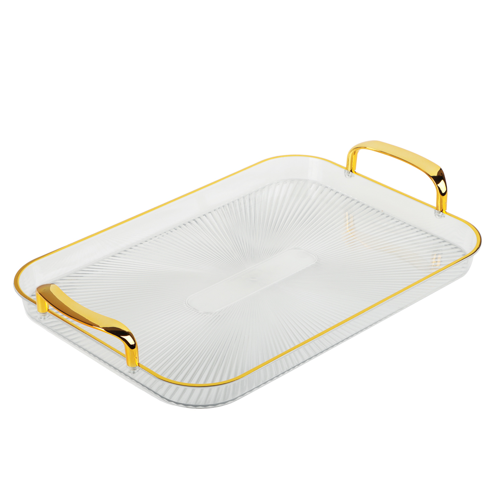 Поднос прямоугольный с ручками с золотой каемкой 42.5x27x3см РЕТ