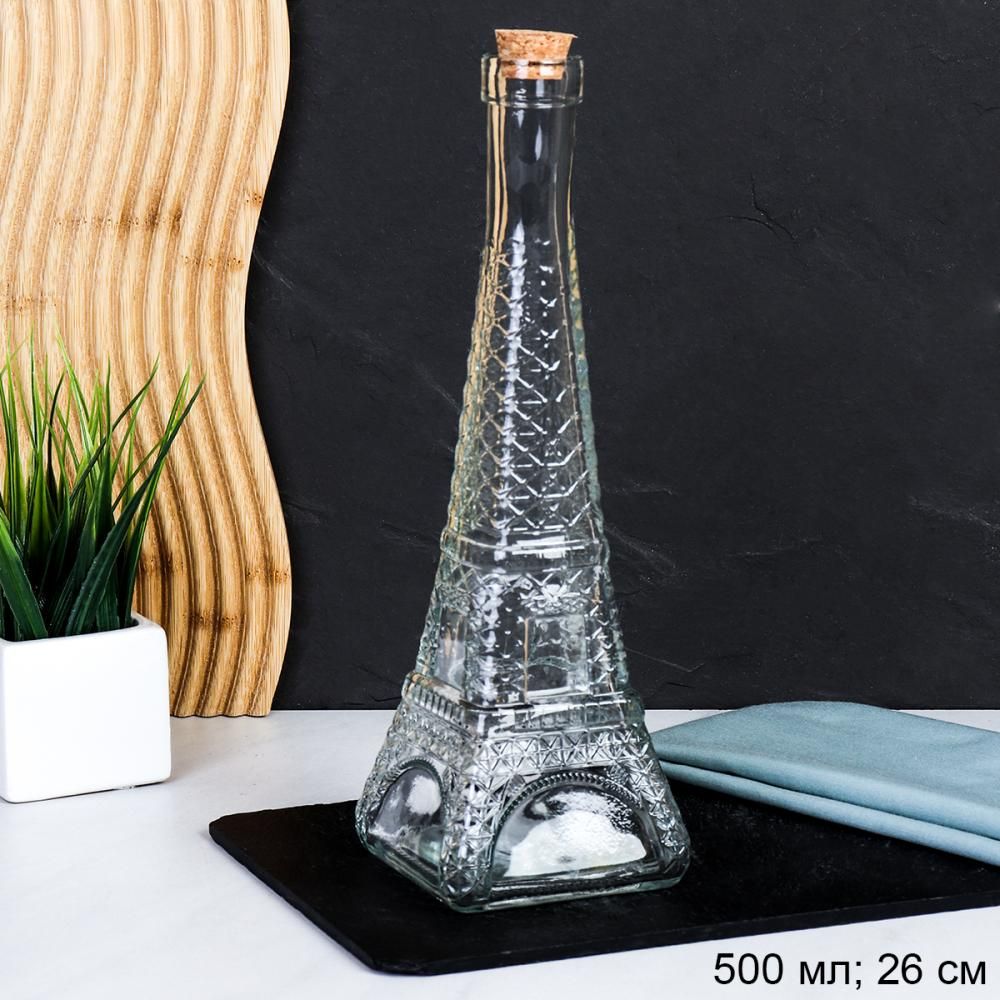 Бутылка штоф 500мл Эйфелева башня с бамбуковой пробкой 26см
