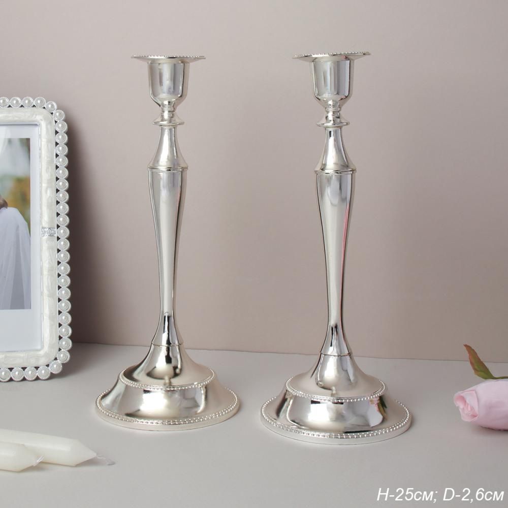 Подсвечник 2 штуки серебро 25см
